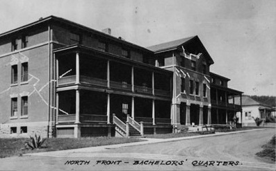 Construction work continued well into the first two decades of the following century. Among the most prominent structures developed at the time included the massive artillery post known as “Fort Winfield Scott,” which debuted in 1912. Like many other buildings raised at the Presidio in the early 1900s, Fort Winfield Scott displayed the design principles of Colonial Revival-style architecture. This was a markedly different approach from previous construction projects that sought to replicate the base’s Spanish heritage. Yet, one much smaller building appeared nearly ten years earlier that acted as the prototype of the base’s use of Colonial Revival architecture. In 1903, military engineers led by architect James Campbell started building a new dormitory-like living space for unmarried army officers within the Main Post. Taking several months and some $45,000 dollars to complete, the building embraced the neoclassical elements that defined Colonial Revival aesthetics. The new building was meant to replace another wood-frame structure called “The Corral,” which had burnt down four years prior. As such, the Colonial Revival-style architecture used to create the barracks served as the example that many more buildings would follow at the Presidio. This new structure went unnamed for some time, though, until General John J. Pershing assumed command over the installation in 1913. Pershing would rise to become one the nation’s greatest heroes, defeating the Mexican bandit Pancho Villa and leading the American Expeditionary Force in World War I. The building was subsequently named “Pershing Hall” in his honor.