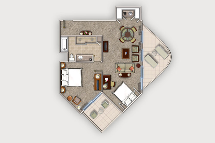Available in the Tower Wing, one-bedroom Tower Ocean Suites feature a king-size bed and a day bed in living room, two private balconies, and provide a setting of perfection at its finest. With breathtaking views of Waikiki Beach and the turquoise blue Pacific Ocean, one can't help but feel exhilarated. Featuring Westin's signature Heavenly Bed® and deluxe spa products, each suite also provides two LCD televisions (32" and 42"), complimentary Royal Kona coffee and select Tazo Teas, refrigerators, and well-appointed granite baths. These suites will accommodate a rollaway comfortably.